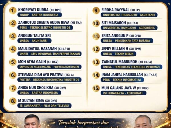 Selamat dan Sukses kepada siswa-siswi yang telah berhasil diterima di Perguruan Tinggi Negeri melalui jalur SNBP Tahun 2026