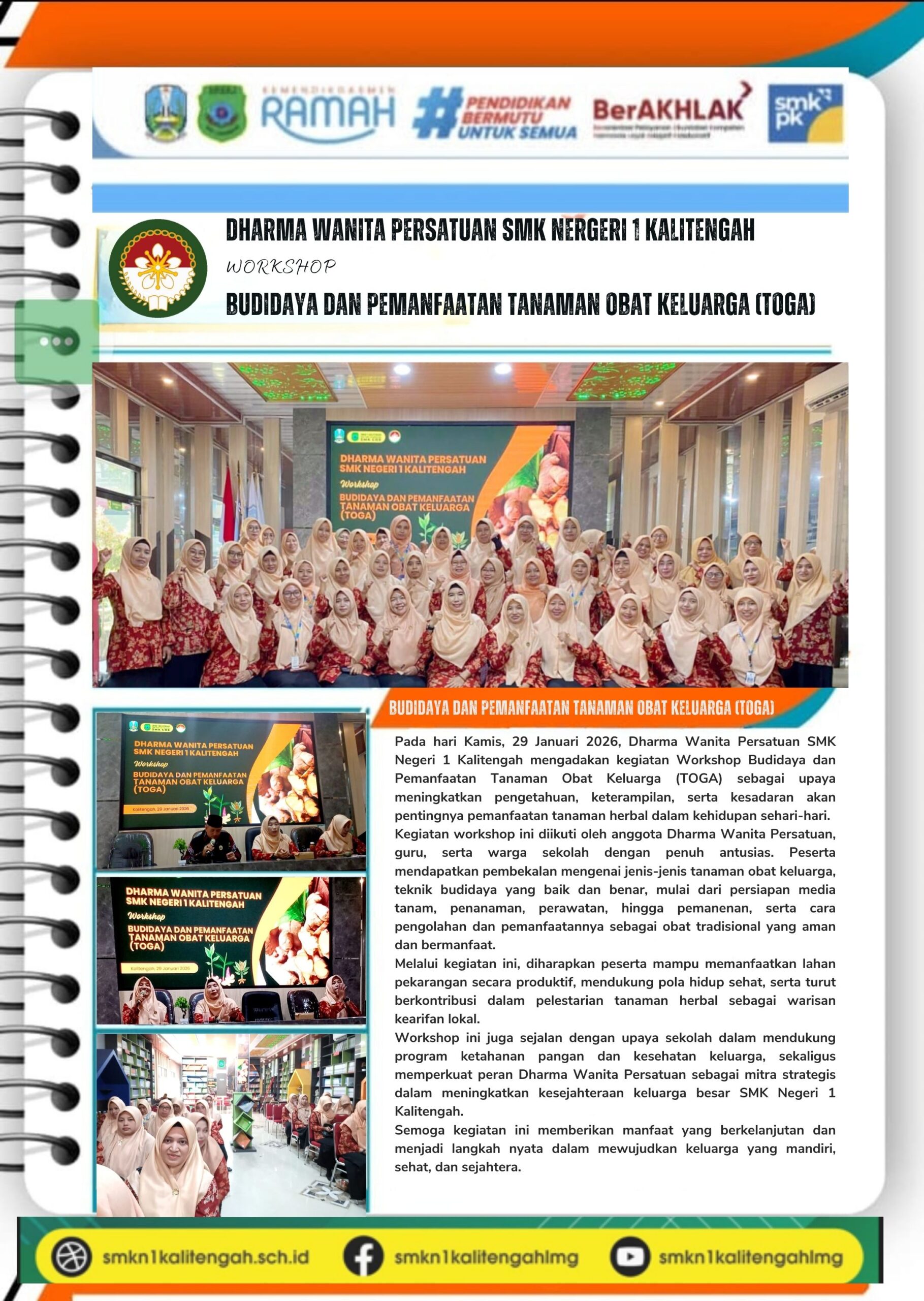 DHARMA WANITA PERSATUAN SMK NERGERI 1 KALITENGAH MENGADAKAN WORKSHOP BUDIDAYA DAN PEMANFAATAN TANAMAN OBAT KELUARGA (TOGA)