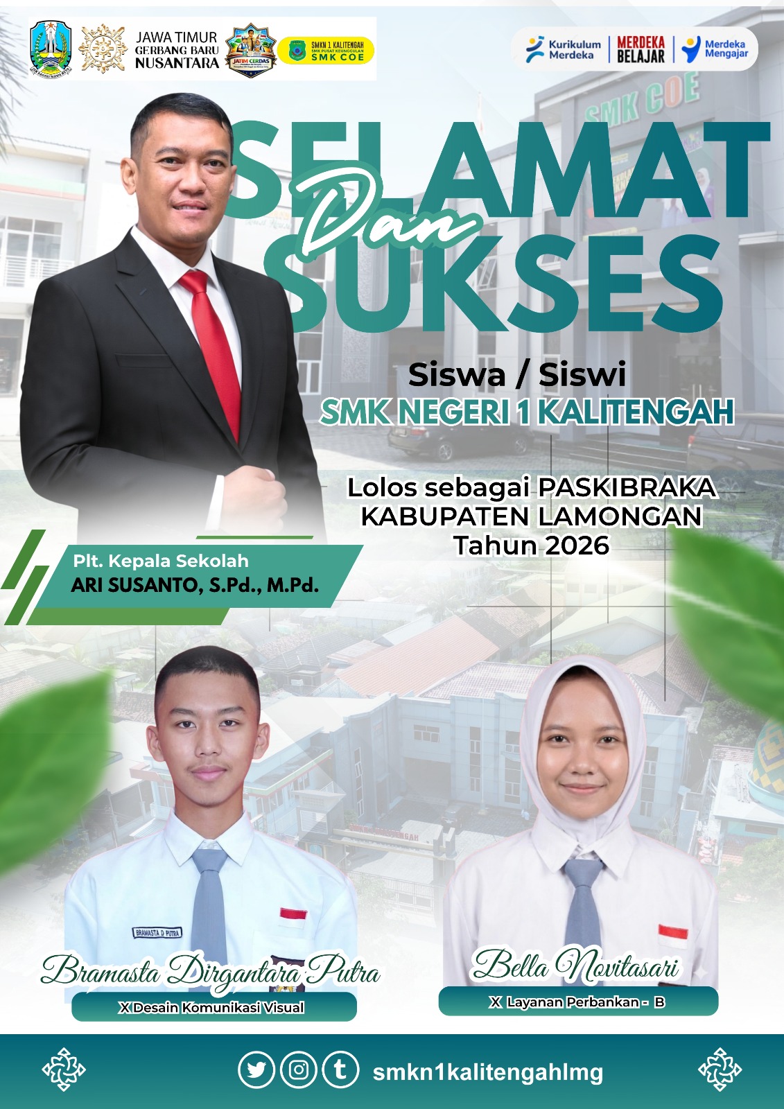 Dengan penuh rasa bangga, kami mengucapkan selamat kepada siswa/siswi SMKN 1 Kalitengah yang telah berhasil lolos sebagai anggota Paskibraka Kabupaten Lamongan Tahun 2026.